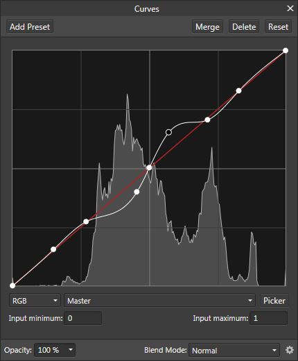 - Use a curves setting similar to ones shown below to further enhance the effect. This will affect only the mid-tones and improve their contrast. ‘S-Shape’ curve adds contrast. This may or may not be required, depending on the level of contrast already there in the mid-tones.
