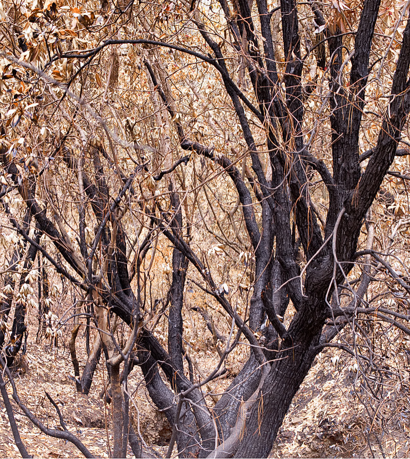 (Burnt-down forest – captured in aperture priority mode with Auto-ISO. I had set the aperture to f/8. Camera set the ISO to 720 so as to maintain a minimum shutter speed of 1/50 with Nikkor 50mm lens. My hands were not that steady on that day due to the emotional impact the burnt forest had on me. I therefore set the minimum shutter speed to 1/focal length in Auto-ISO setting. Do read this – Forest Fire)
