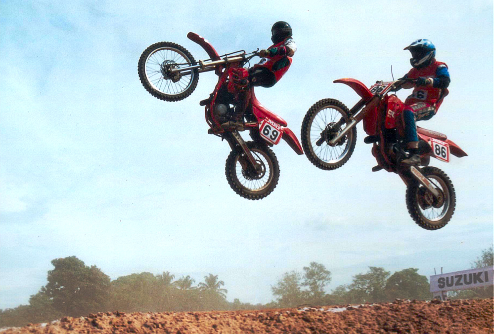 (Another capture on a no-name slide film. These no-name slide films and even the expired rolls were inexpensive and worked reasonably well at times. What mattered here was getting the placement of the bikes right.)