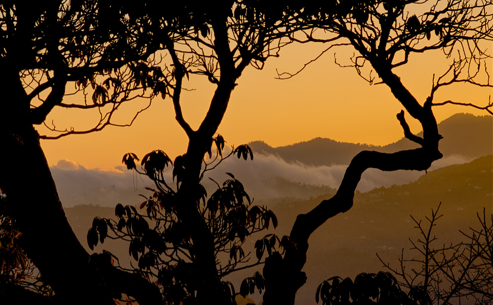 After the temple complex, we went to a nearby hill-top. The aim was to photograph Alpenglow on the snow-covered peaks and maybe some sunset photographs too. The sky was not entirely clear. Having captured the peaks on some really clear days, I was more interested in the sunset.