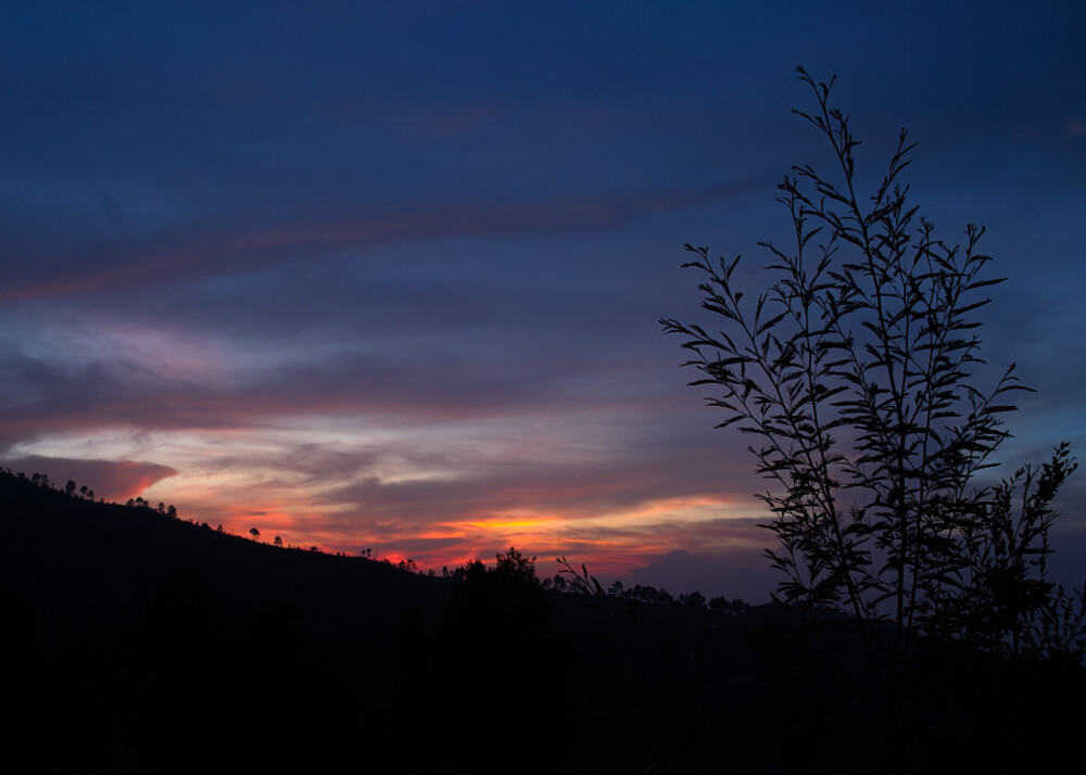 Who says that the sunsets are always warm colored? Here in Natadol, we have all the possible colors. The most beautiful ones are the mix of deep blue sky or dark grey clouds above and an area of warm colors in the middle. These are simply lovely.