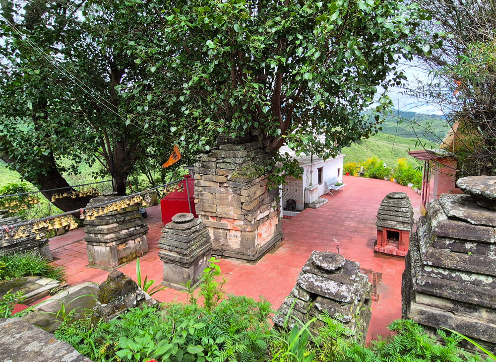 The short trek to the temple passes through an old settlement where traditional Kumaoni houses can be seen, characterised by stone walls, slate roofs, intricately carved wooden doors and windows, and many other fascinating vernacular architectural details. On the sides of the pathway, lush greenery gives a refreshing feel.